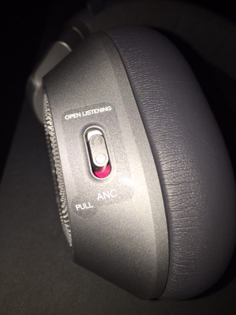 Passons à la partie un peu plus technique de la conception du casque, les deux oreillettes possèdent chacune des options distinctes, à droite on trouvera d’abord le cercle principal qui servira à gérer les appels par une simple pression, il pourra aussi indiquer le niveau de batterie par le même procédé. On pourra aussi retrouver de mise sous/hors tension qui jouera aussi le rôle de connecteur bluetooth si on le maintient quelques secondes, on notera qu’il sera possible de connecter deux appareils en même temps sur le casque. En dernier on trouvera un bouton rouge servant principalement à désactiver/activer le microphone du casque, mais aussi à activer les smart sensors, ces capteurs qui vont déclencher ou arrêter la musique selon si vous mettez ou enlevez le casque, une vraie innovation très pratique qui permet de ne pas perdre une miette de votre écoute, mais cette prouesse est à double tranchant car on pourra parfois remarquer que les capteurs ne sont pas toujours très fiables. À gauche on aura donc le bouton classique play/pause sur le cercle principal ainsi que les boutons d’avance et de retour, en plus de ses options on aura une molette servant à augmenter/baisser le son en s’en servant, une voix nous préviendra quand on aura atteint le volume maximum et inversement. Cette oreillette gauche dispose d’un dernier interrupteur qui servira à trois choses, déclencher l’isolation passive, la réduction de bruit active et enfin l’écoute de l’environnement extérieur.